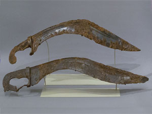 Kukri jest zbliżony wyglądem do pochodzących z V w. p.n.e. greckich mieczy machaira. Były to miecze tnące o zbliżonym wyglądzie, lecz dużo większe. Prawdopodobnie wzór ten został przekazany do Nepalu poprzez Scytów lub też przybył na Półwysep Indyjski wraz z armią Aleksandra Wielkiego, którego sława wojenna szybko rozeszła się po krajach Azji. Dzięki rozszerzającej się ku sztychowi głowni była to broń ciężka i dobrze wyważona do cięcia. Zapewne wymagała nieco miejsca, by wojownik mógł wziąć zamach, więc nadawała się szczególnie do walki w luźniejszym szyku.