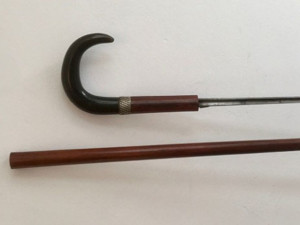 W lasce o tym kształcie często ukrywano też ostrze co pozwalało posługiwać się tą bronią jak szpadą . Czyniło to broń jeszcze bardziej wszechstronną i niebezpieczną.